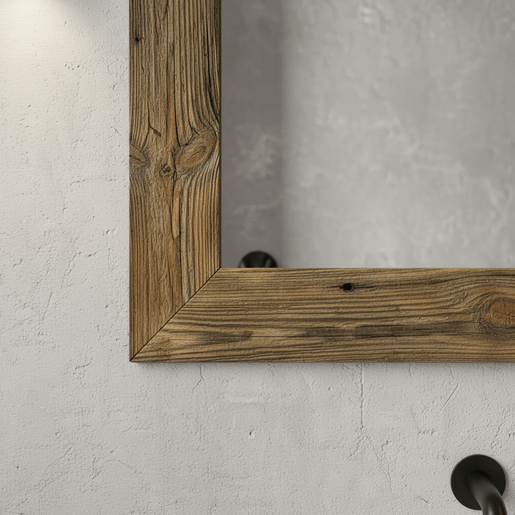 Lustro łazienkowe – OM5Lustro łazienkowe OM5 od OldMar to unikalny element wystroju, wykonany z starego drewna. Jego naturalne słoje dodają charakteru, a impregnowana powierzchnia zapewnia odporność na wilgoć. Idealne do nowoczesnych i industrialnych wnętrz.