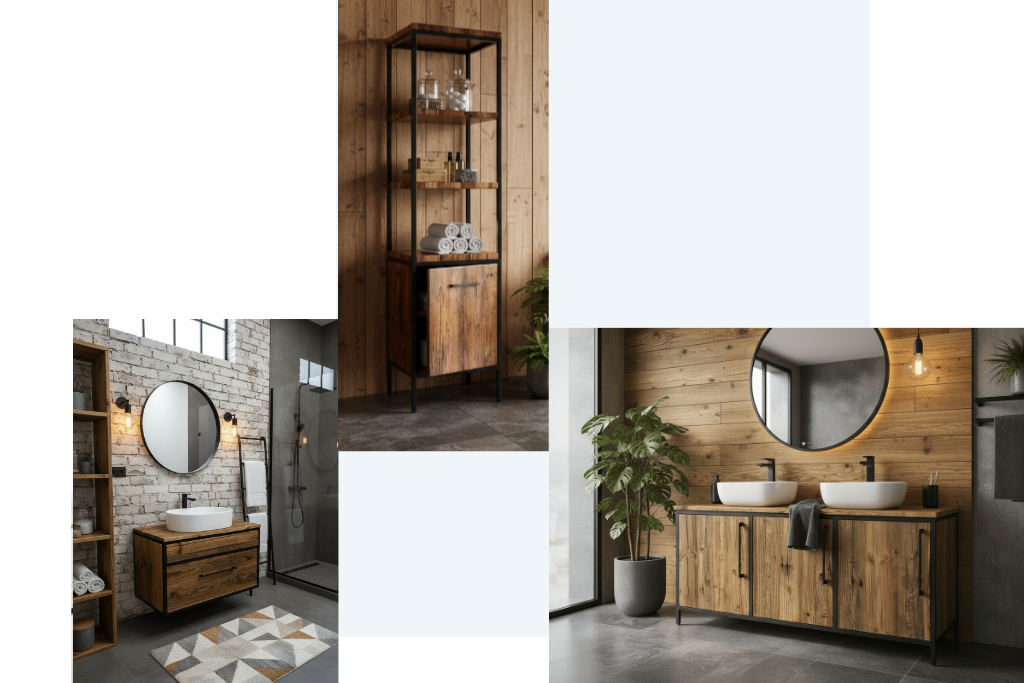 Przygotowany asortyment obejmuje najlepsze loftowe meble łazienkowe ze starego drewna. Takie wyroby wykonane z materiałów pochodzących z recyklingu bardzo dobrze wpiszą się w rozmaite pomieszczenia – zarówno te o dużym, jak i małym metrażu. Umożliwiają wygodne zaaranżowanie armatury, a także dają przestrzeń do przechowywania środków czystości, ręczników i innych rzeczy osobistych. Polecamy konsole z praktycznymi szufladami oraz zamykanymi półkami czy szafki pod umywalki. Przydatnym meblem będą też zajmujące niewiele miejsca słupki.